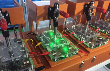 該套系統(tǒng)主要用于對PH4.0控制器電路板的標(biāo)定。整個標(biāo)定過程除了對電流電壓的標(biāo)定,也包括了一開始電路板程序的燒錄,每塊板子從開始燒錄到標(biāo)定完成僅需1分鐘左右,相比人工標(biāo)定,效率提高了100%。整套系統(tǒng)最高可以一輪標(biāo)定72塊板子,標(biāo)定源采用的是橫河CA71校驗儀,這一高成本投入,從源頭上保證了每次標(biāo)定的準(zhǔn)確度和人工標(biāo)定所不具有的優(yōu)秀重復(fù)性。該套全自動標(biāo)定系統(tǒng),除了最大限度的節(jié)省人力資源,同時也為聯(lián)測智能標(biāo)定技術(shù)的發(fā)展提供了一個良好開端。聯(lián)測的研發(fā)團隊在標(biāo)定系統(tǒng)中加入的智能識別技術(shù),當(dāng)標(biāo)定出現(xiàn)錯誤時,系統(tǒng)操作界面會自動顯示錯誤代碼,我們的工程師就能立馬查明錯誤原因,從而進行下一步調(diào)試工作,整個標(biāo)定效率得到了顯著提升。