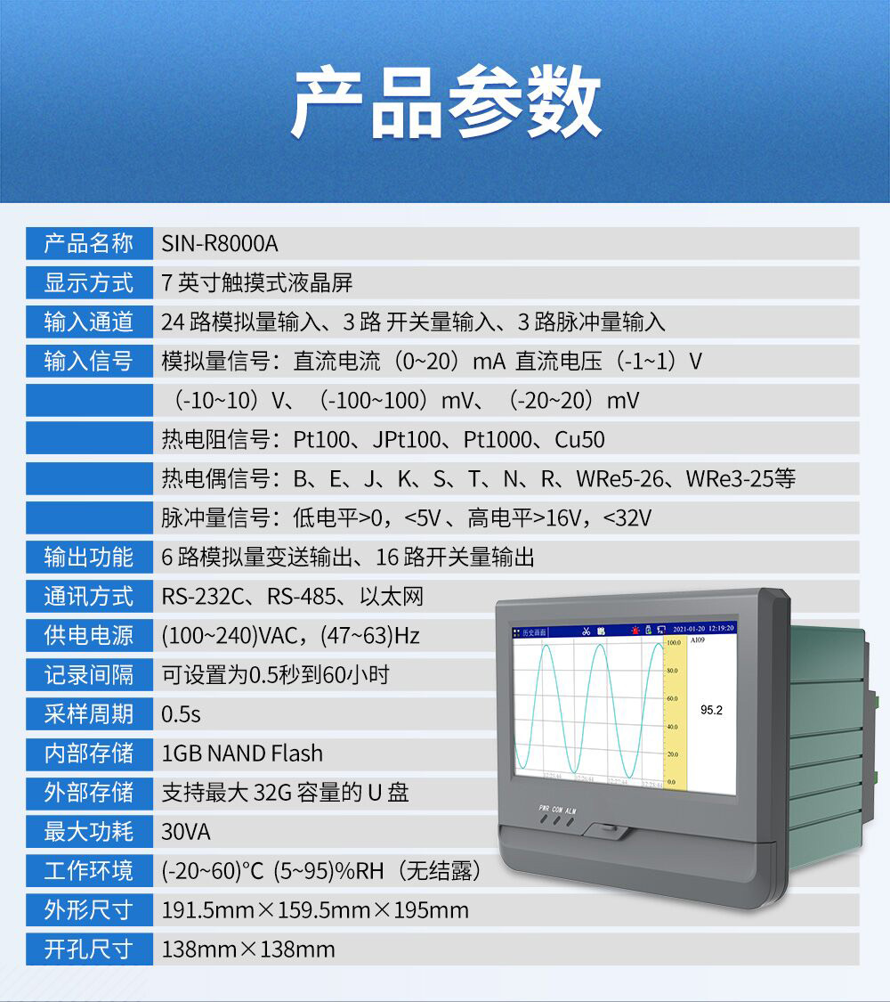 您的位置:首頁 > 無紙記錄儀 → 聯測_SIN-R8000A_(觸摸屏)1-24路可選_7英寸無紙記錄儀_0.5S高速采集_溫度_壓力_多種參數