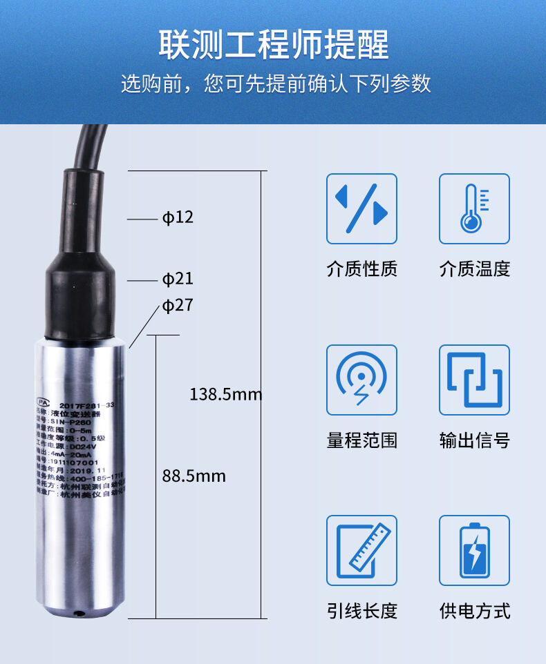 您的位置:首頁 > 液位變送器 → 聯(lián)測_SIN-P260投入式液位計(jì)/水位計(jì)_消防水箱_污水池_水庫液位_